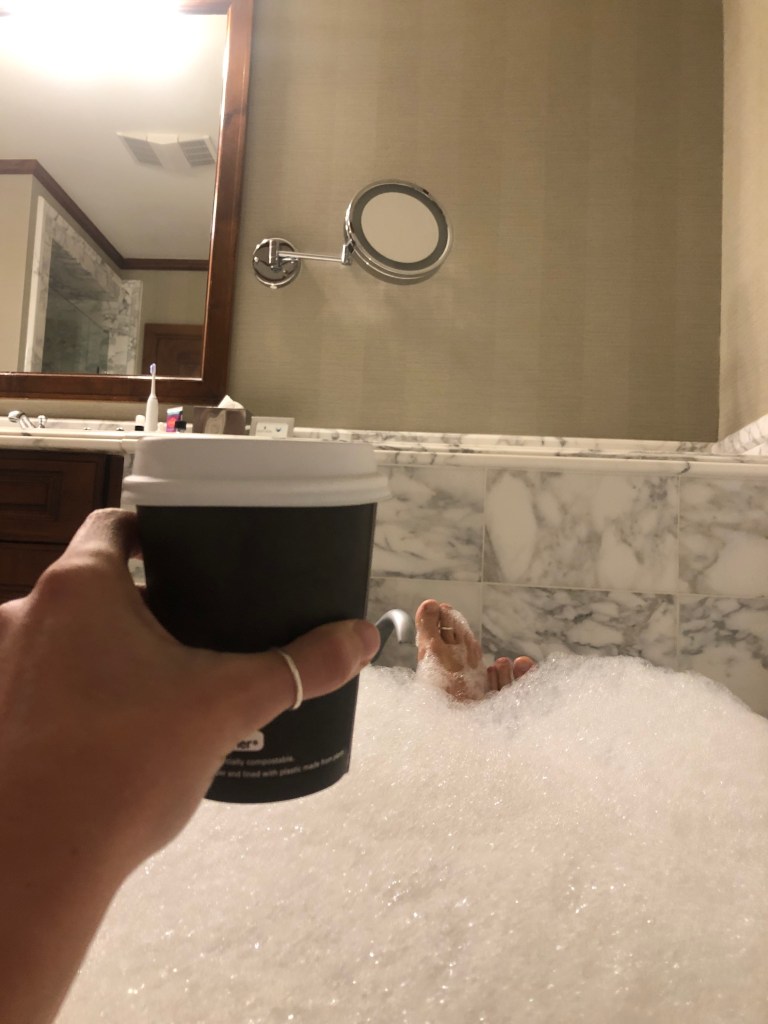 A weary public school teacher, feeling guilty and pampered on a Tuesday evening.