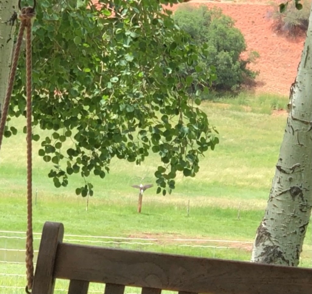 The high-pitched zoom-zing-zing of those darting hummingbirds.