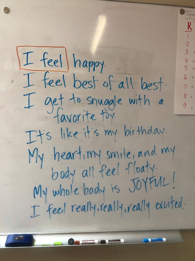 My first and second grade poets. They feel their feelings deeply. They can identify and describe their feelings to communicate with others. They’re comfortable with sharing the range of human emotions that we all feel (yet rarely, as adults, have the time to precisely unpack).