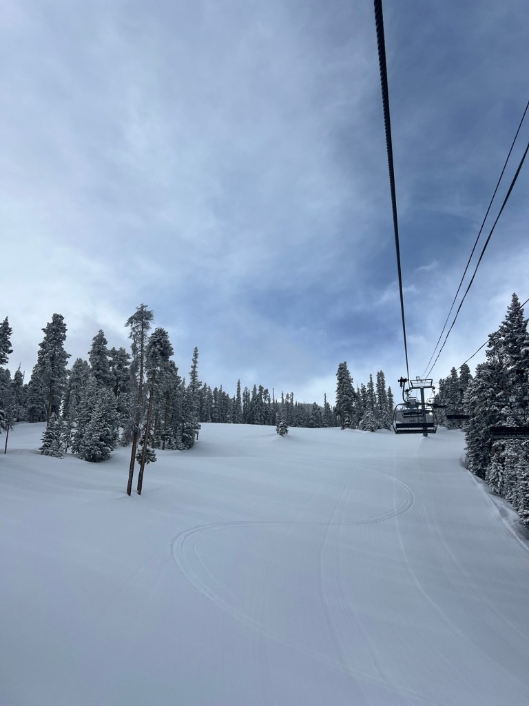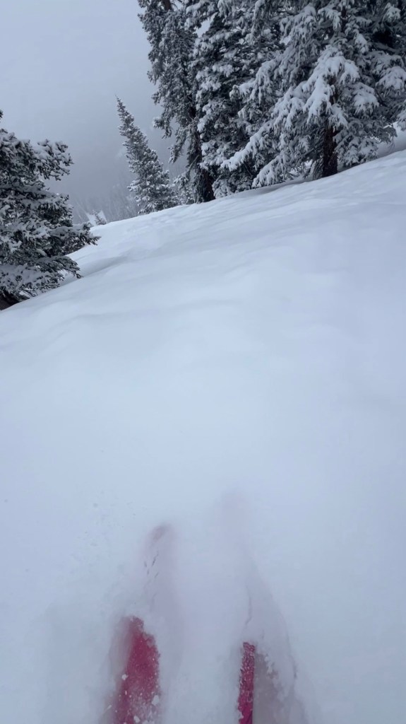 From repeated first tracks on perfect groomers to repeated first tracks through knee-deep poofiness, Snowmass filled me up today. 13 runs, just over 20K vertical feet, and all before noon.